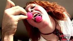He forces her mouth painfully wide, stretching it to its limits with the handle of his lash, before she milks his cock. He...